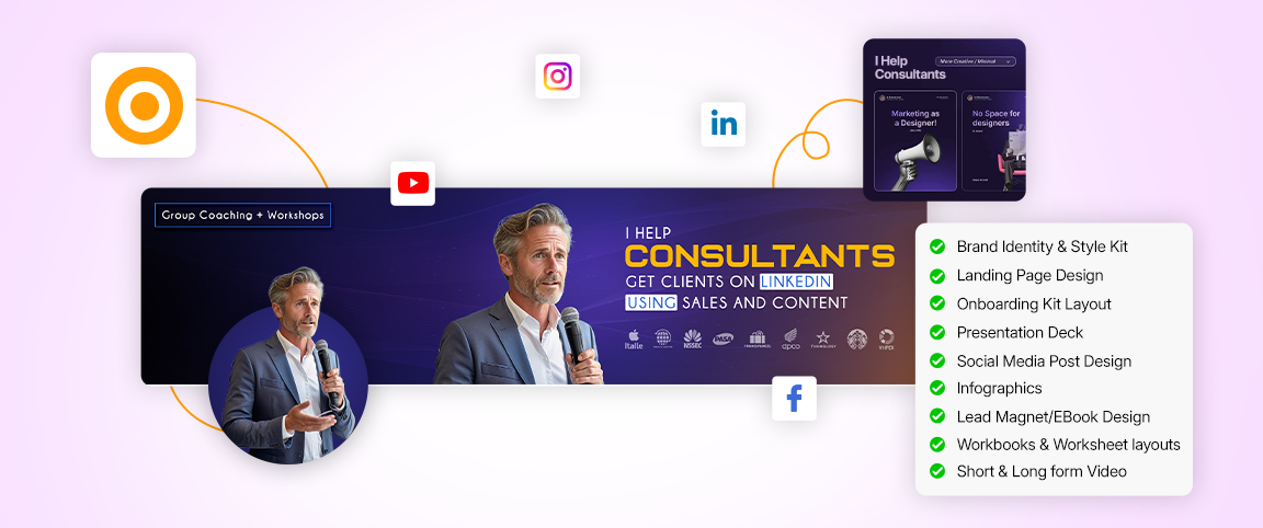 Trying to stand out as a coach or consultant online? It’s tough, right? Between content creation, marketing, and client calls, finding time to create polished, professional graphics can feel impossible. But the truth is your visuals are often the first impression someone has of your brand. Whether you’re a business coach for graphic designers, a branding consultant, or a life coach building your presence, great design sets the tone.